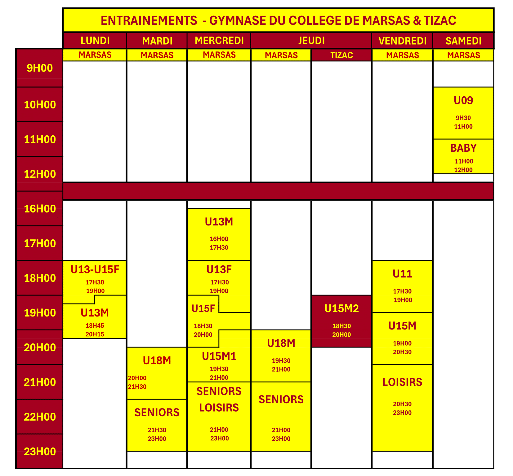 PLANNING D'ENTRAINEMENT